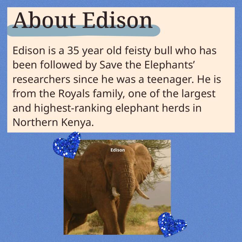 Happy Birthday to me! Of Course, I've been celebrating my birthday all month, but today is the actual day. I got a beautiful bouquet of sunflowers, a delicious cake, and my very own elephant! Elephants are known for their great strength, yet they are gentle giants who are wise, intelligent, and very loyal. Luckily for my elephant, he gets to stay in Africa at an elephant preserve, but I get to see where he roams. Being able to track an elephant is amazing, and by "adopting" this elephant, we are helping Edison and his entire family on the preserve live in a safe and protected area. My love for Elephants go much deeper and it began with my pregnancy with my first child and it carried on into my first granddaughter. I already love sweet Edison, please welcome him and his family in our family.