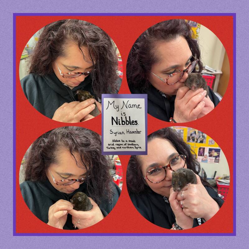 Nibbles, one of the class pets, was out and about this morning, so I decided we needed some bonding time. She's such a cutie! The classroom teacher uses classroom pets as a fun and engaging way to teach vocabulary and concepts of habitats, animal behaviors and structures, and adaptations, but the pets also serve as therapy animals for kids who miss their own pets (like I miss my MCat) or have no pets of their own, kids who need a furry hug, and reluctant learners who may be intimidated by science books but come alive when getting the chance to bond with a real-life animal.