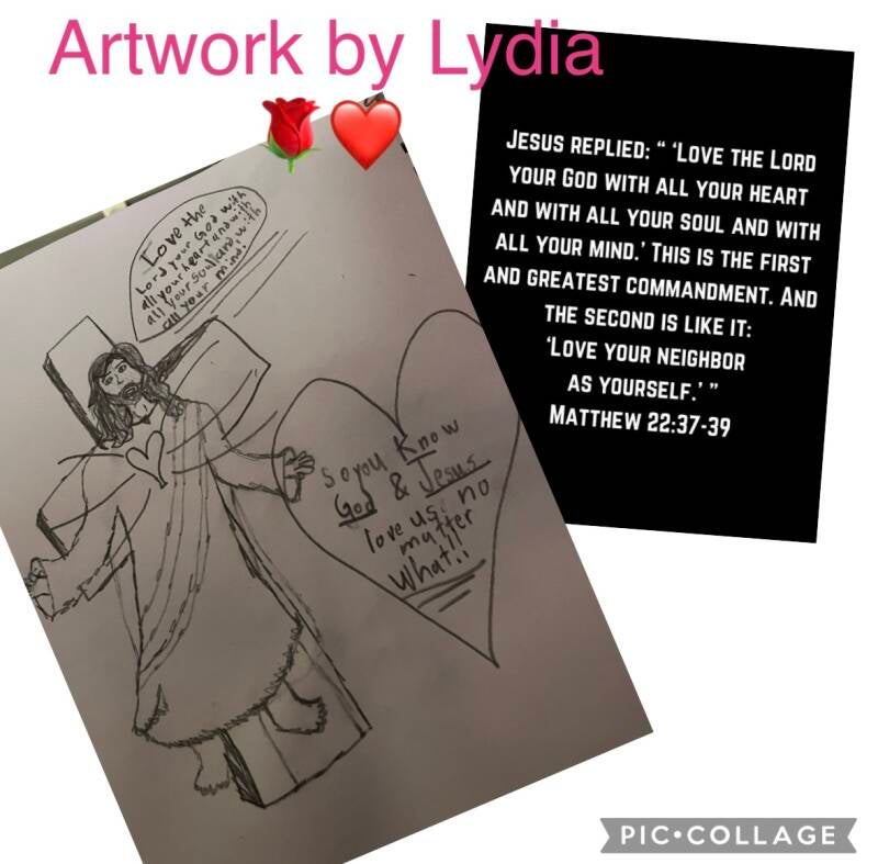 Lydia put the verse about loving the Lord with our heart, mind and soul. Loving our neighbors just as he loves us.